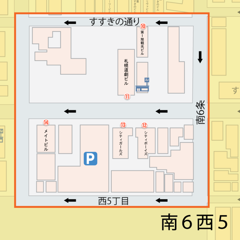 すすきのの店舗型性風俗店と呼ばれる、ファッションヘルスと風俗エステは実は全て南5条西5丁目と南6条西5丁目のエリアに集中しているんです。